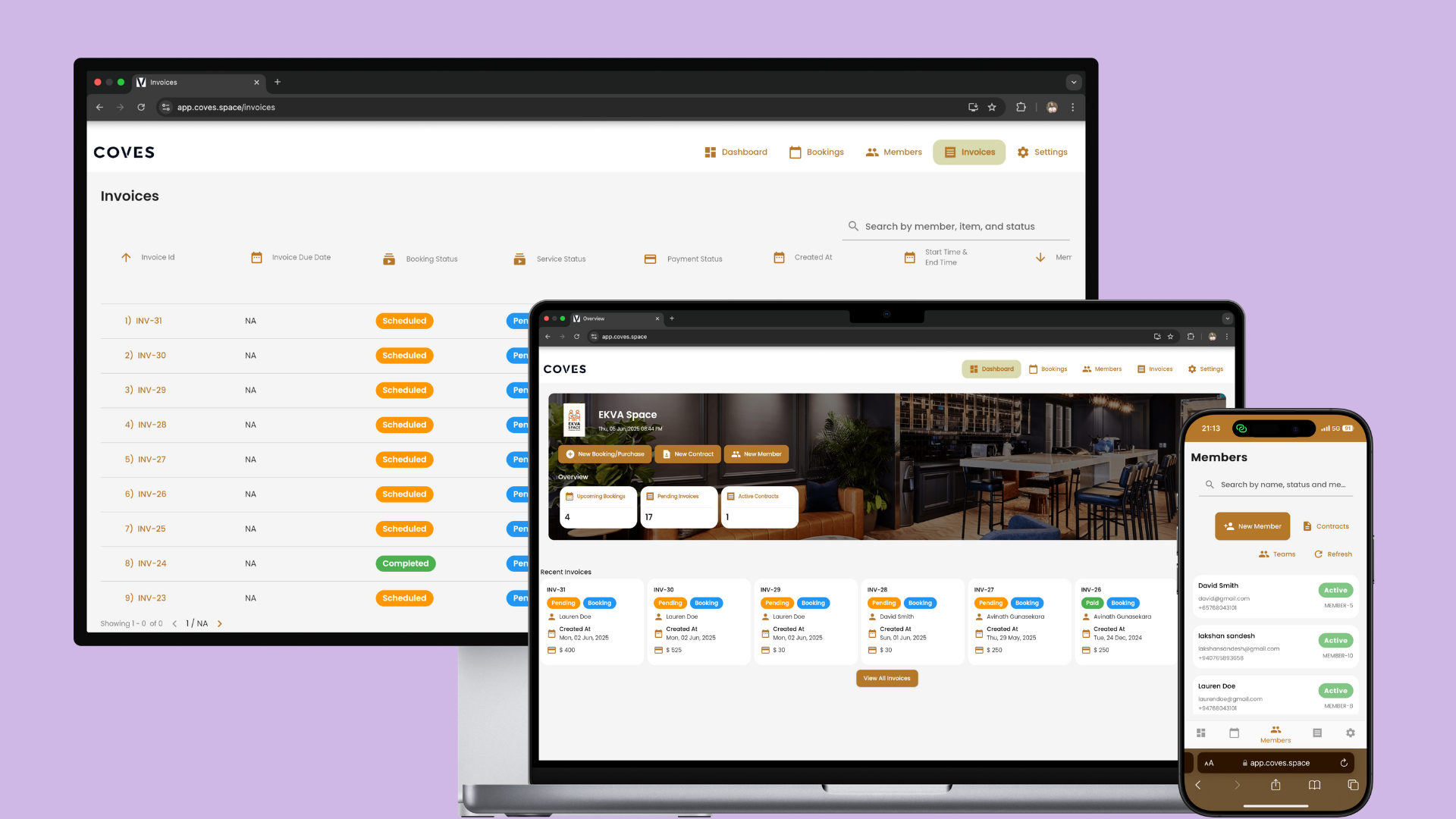Unified bookings, contracts, invoicing, and member management in one beautifully simple platform.