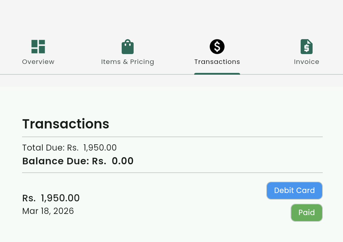 Each booking comes with a full financial trail — total due, outstanding balance, and payment method. No spreadsheets, no chasing. Everything you need is one click away from the booking record.